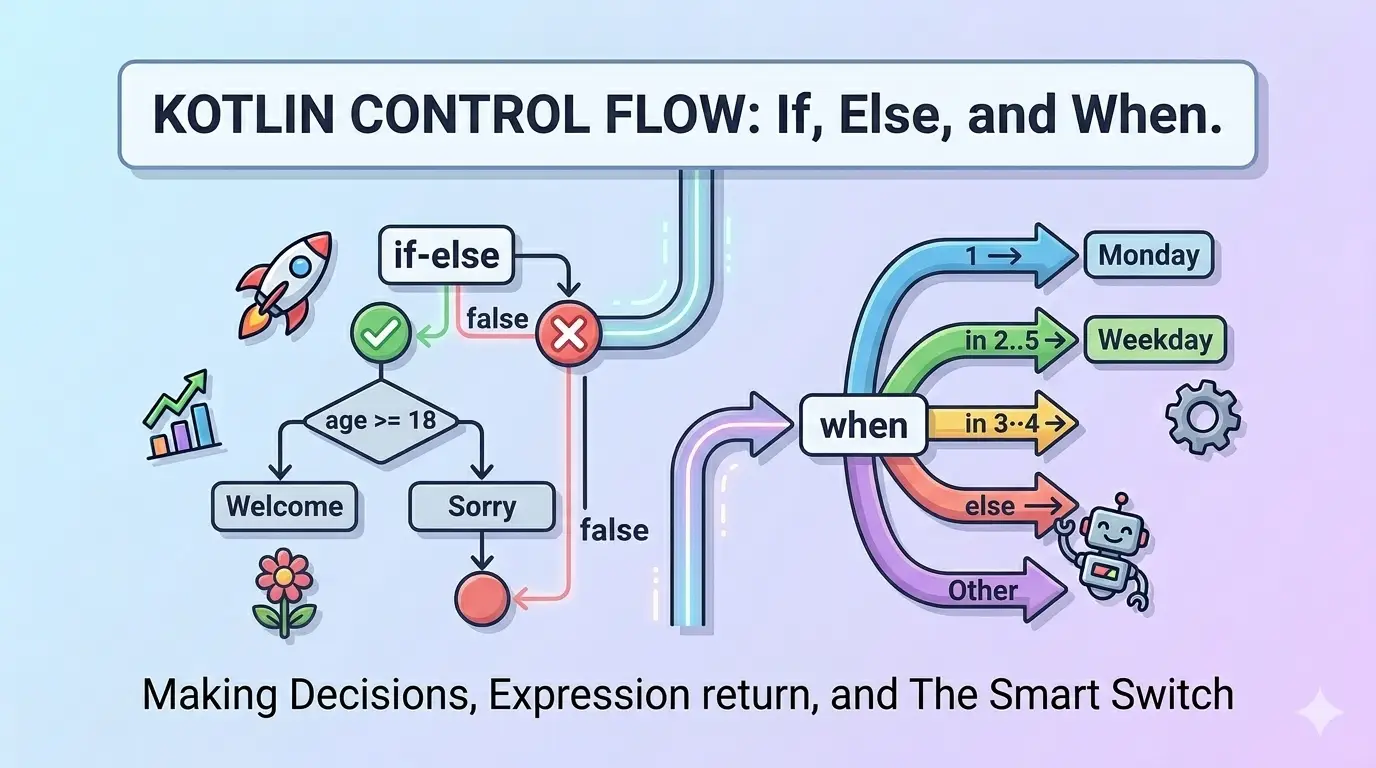 Kotlin Control Flow: If, Else, and When expressions.